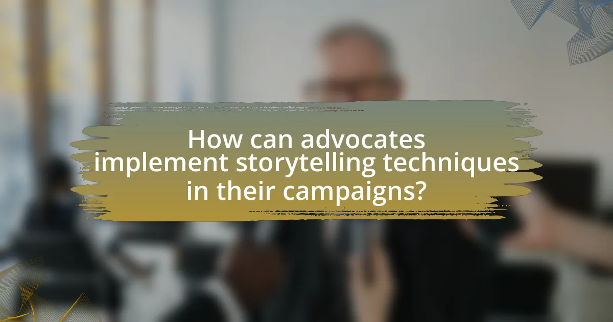 Advocates can implement storytelling techniques in their campaigns by creating relatable narratives that connect emotionally with their audience. This involves identifying key characters, such as individuals affected by network neutrality issues, and illustrating their experiences through compelling anecdotes. Research shows that stories can increase engagement and retention of information; for instance, a study by the Stanford Graduate School of Business found that narratives are 22 times more memorable than facts alone. By using vivid imagery and personal testimonials, advocates can effectively convey the importance of network neutrality, making complex issues more accessible and motivating action among supporters.