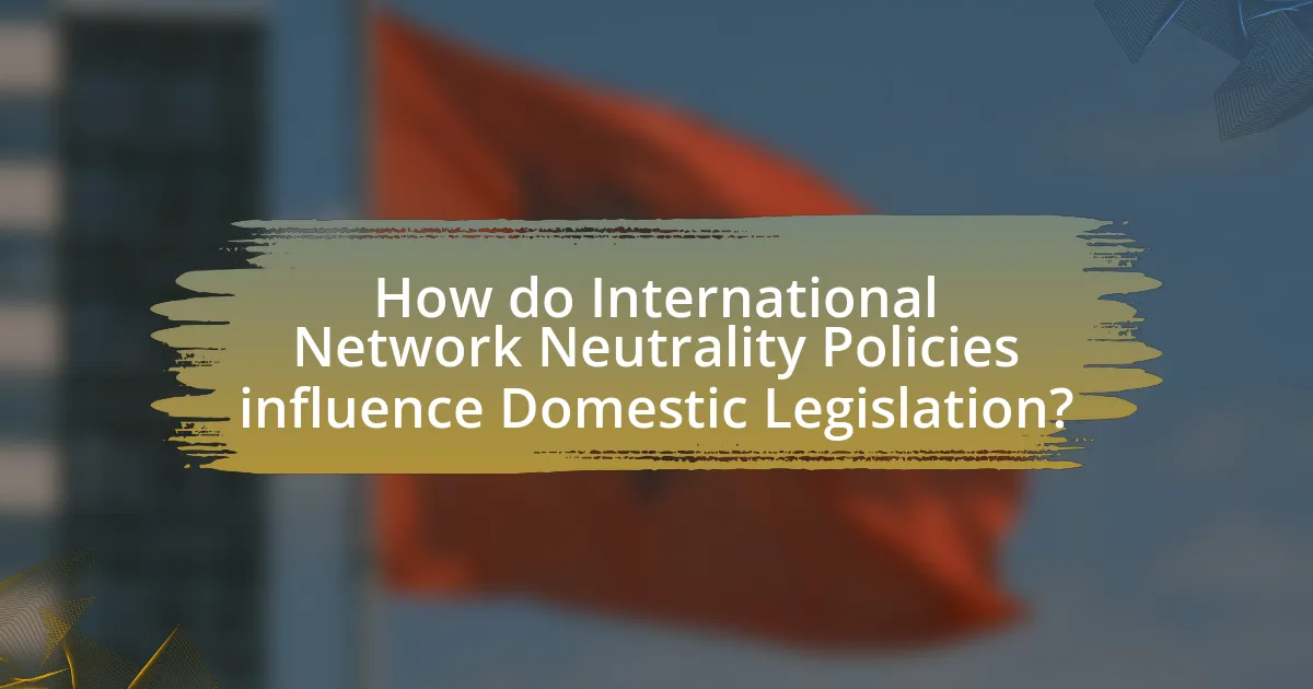 International Network Neutrality Policies significantly influence Domestic Legislation by establishing a framework that guides national regulations on internet access and service provision. These international policies, such as those advocated by organizations like the Internet Governance Forum, promote principles of openness and non-discrimination, which domestic lawmakers often adopt to align with global standards. For instance, countries that participate in international agreements on network neutrality may implement similar regulations to ensure compliance and foster a competitive digital economy, as seen in the European Union’s General Data Protection Regulation, which has inspired data protection laws worldwide. This alignment not only facilitates international trade and cooperation but also addresses consumer rights and access to information, reinforcing the importance of equitable internet access in domestic legal frameworks.