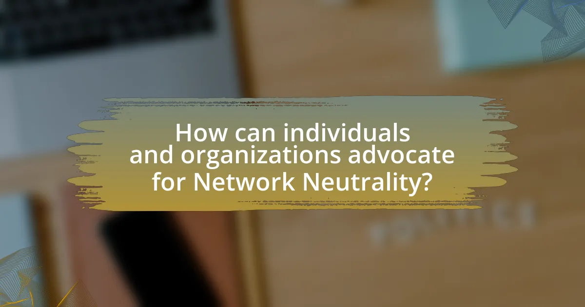 Individuals and organizations can advocate for Network Neutrality by actively participating in public policy discussions, engaging with lawmakers, and supporting relevant legislation. For instance, individuals can contact their representatives to express support for policies that protect an open internet, while organizations can mobilize their members to participate in campaigns that promote Network Neutrality. Evidence of successful advocacy includes the 2015 FCC decision to implement strong Net Neutrality rules, which was largely influenced by public pressure and grassroots movements.