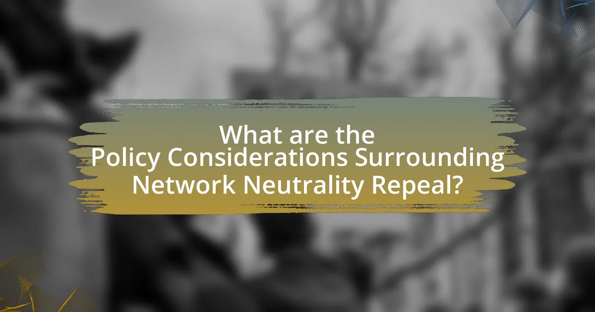 The policy considerations surrounding network neutrality repeal include the potential for increased market concentration, reduced competition, and the risk of prioritizing certain content over others. Repealing network neutrality allows Internet Service Providers (ISPs) to create “fast lanes” for preferred content, which can disadvantage smaller companies and startups that cannot afford to pay for better service. This shift could lead to a less competitive market, as evidenced by studies indicating that a lack of net neutrality may result in higher prices for consumers and fewer choices in the long run. Additionally, the Federal Communications Commission’s 2017 repeal of net neutrality regulations raised concerns about the implications for free speech and innovation, as ISPs could potentially censor or throttle content that does not align with their business interests.