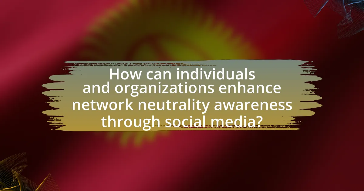 Individuals and organizations can enhance network neutrality awareness through social media by creating and sharing informative content that highlights the importance of equal access to the internet. Engaging posts, infographics, and videos can effectively communicate the implications of network neutrality, making complex concepts accessible to a broader audience. For instance, organizations like the Electronic Frontier Foundation have utilized social media campaigns to educate users about the risks of losing net neutrality, resulting in increased public discourse and advocacy. Additionally, leveraging hashtags and participating in trending discussions can amplify the reach of these messages, fostering community engagement and mobilizing support for policy changes.
