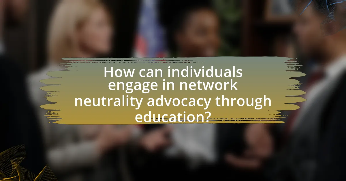 Individuals can engage in network neutrality advocacy through education by actively participating in awareness campaigns, workshops, and discussions that focus on the importance of maintaining an open internet. Educational initiatives can include organizing community seminars that explain the principles of network neutrality, its implications for users, and the potential consequences of its erosion. For instance, the Internet Association reported that 86% of Americans support net neutrality, highlighting the public’s interest in understanding this issue. By leveraging educational platforms, individuals can disseminate information, mobilize community support, and encourage informed discussions, thereby fostering a more engaged and knowledgeable public on network neutrality matters.