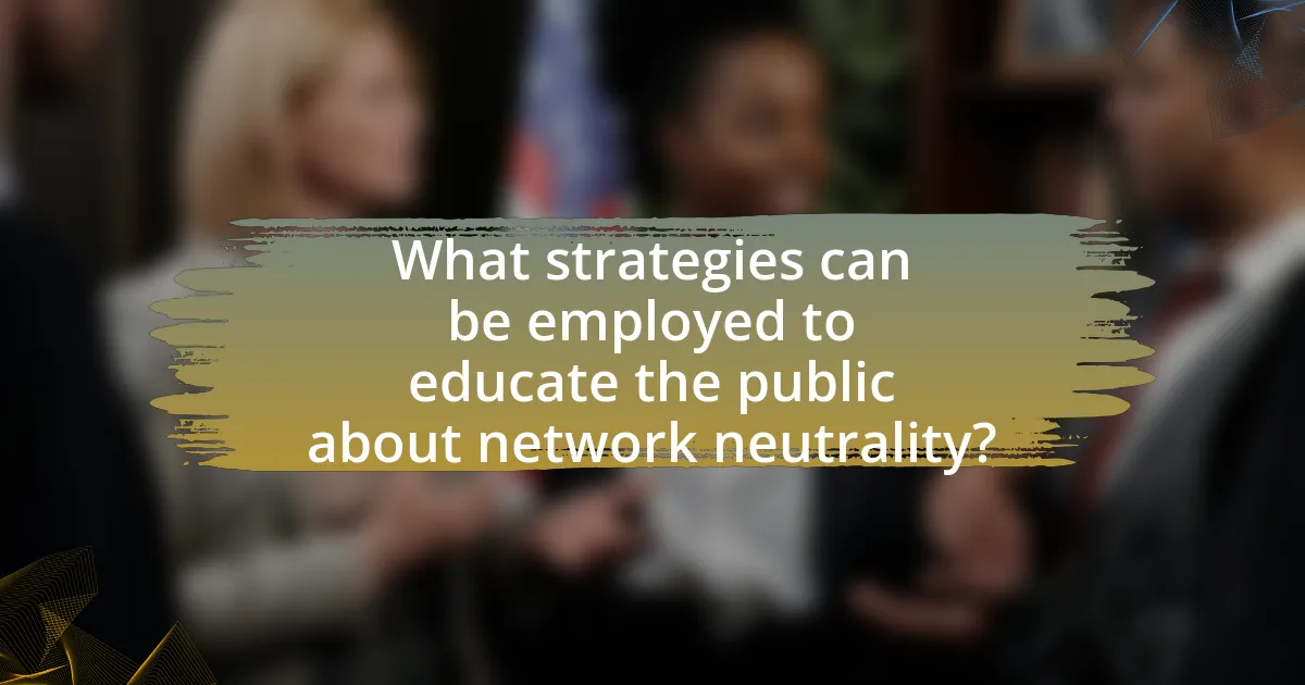 To educate the public about network neutrality, strategies such as community workshops, online campaigns, and partnerships with educational institutions can be employed. Community workshops provide a platform for direct engagement, allowing individuals to ask questions and discuss the implications of network neutrality in a local context. Online campaigns, utilizing social media and informative websites, can reach a broader audience, disseminating clear and accessible information about network neutrality’s importance and impact on internet access. Collaborating with educational institutions can integrate network neutrality topics into curricula, fostering understanding among students who will be future internet users and policymakers. These strategies are effective as they promote active participation and informed discussions, essential for raising awareness and engagement in network neutrality advocacy.