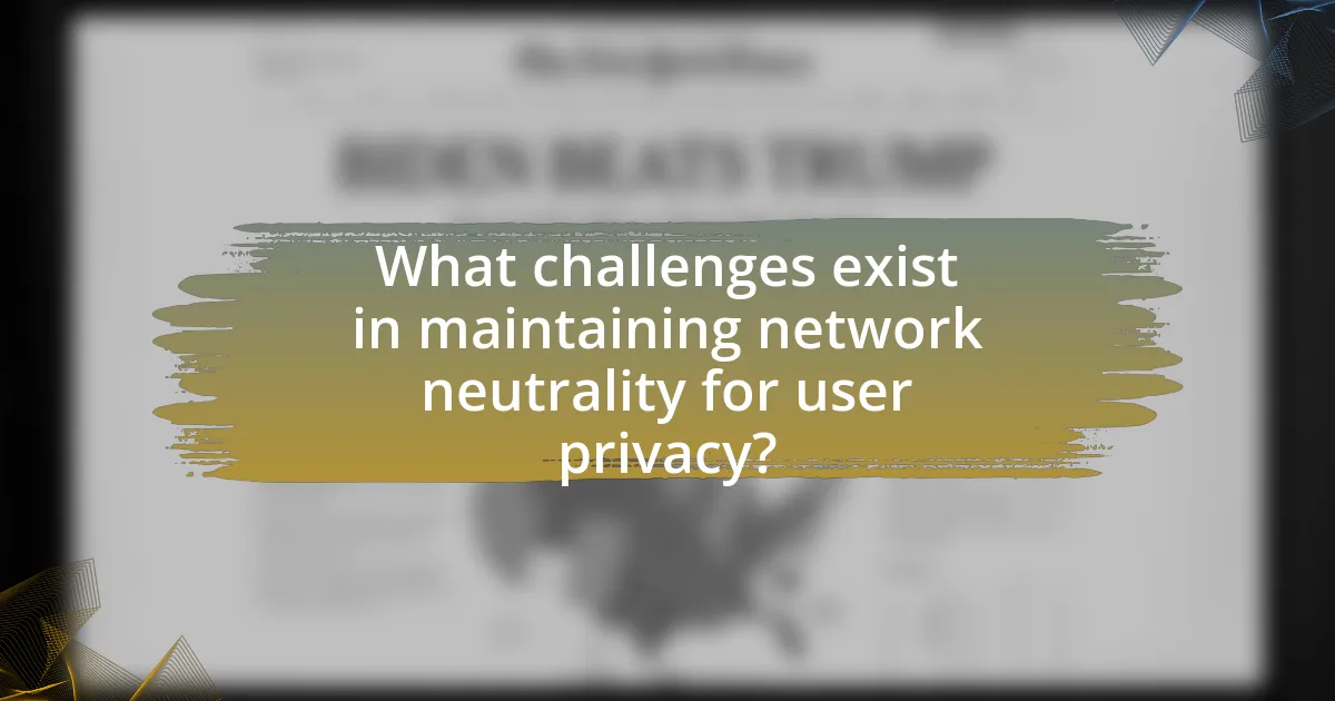 Maintaining network neutrality poses significant challenges for user privacy due to the potential for Internet Service Providers (ISPs) to prioritize certain types of traffic, which can lead to data discrimination. ISPs may exploit their control over data flow to monitor user activities, creating privacy risks as they can collect and sell user data without consent. For instance, a study by the Electronic Frontier Foundation highlights that without strong net neutrality regulations, ISPs can engage in practices like deep packet inspection, which allows them to analyze and store user data, undermining privacy protections. Additionally, the lack of transparency in ISP practices complicates users’ ability to understand how their data is being used, further eroding trust and privacy.