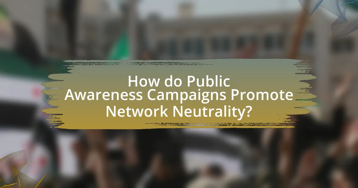 Public awareness campaigns significantly influence public opinion by shaping perceptions and attitudes toward specific issues, such as network neutrality. These campaigns utilize targeted messaging, media outreach, and community engagement to inform the public about the importance of maintaining an open internet. For instance, a study by the Pew Research Center found that 73% of Americans believe that internet service providers should treat all data equally, highlighting how effective campaigns can shift public sentiment. By raising awareness and providing information, these campaigns mobilize public support, ultimately impacting policy decisions and legislative actions related to network neutrality.