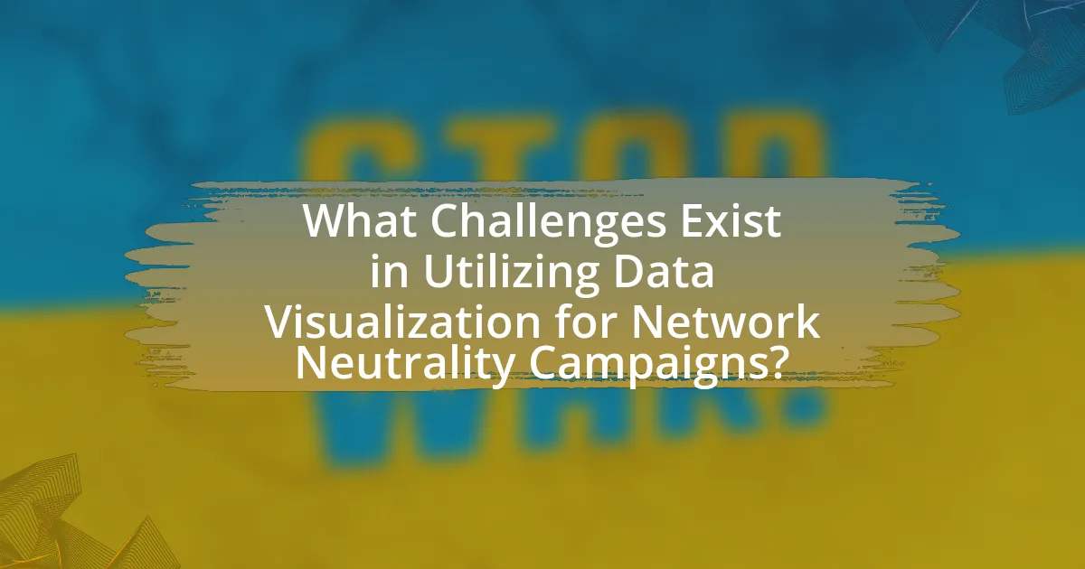 Utilizing data visualization for network neutrality campaigns faces several challenges, primarily related to data complexity and audience comprehension. The intricate nature of network neutrality data, which includes various metrics like bandwidth usage, latency, and service quality, can overwhelm viewers if not presented clearly. Additionally, different audience segments may interpret visual data differently, leading to misconceptions or misinterpretations of the information being conveyed. For instance, a study by the Pew Research Center found that 62% of adults struggle to understand complex data visualizations, highlighting the need for simplicity and clarity in design. Furthermore, the potential for bias in data selection and representation can skew public perception, making it crucial for campaigners to ensure transparency and accuracy in their visualizations.