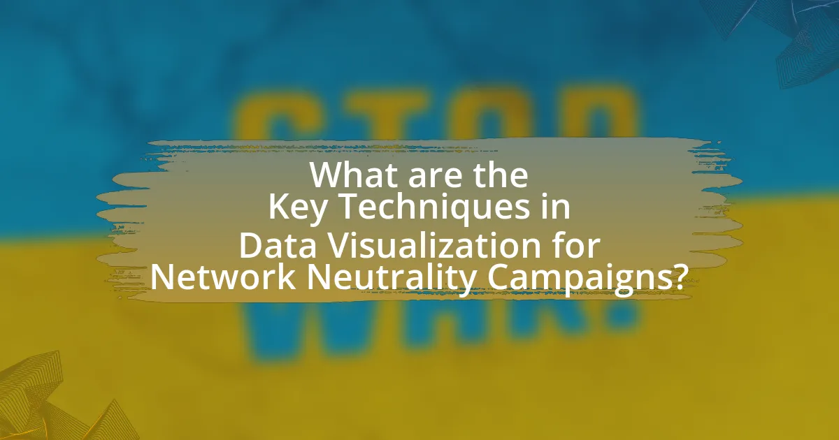 Key techniques in data visualization for network neutrality campaigns include the use of interactive dashboards, infographics, and geographic information systems (GIS). Interactive dashboards allow stakeholders to explore data dynamically, facilitating a deeper understanding of network usage patterns and potential violations of neutrality. Infographics simplify complex data into visually appealing formats, making it easier to communicate key messages to the public and policymakers. GIS enables the mapping of broadband access disparities, highlighting areas affected by lack of neutrality, thus providing a visual representation of the issue. These techniques enhance engagement and comprehension, ultimately supporting advocacy efforts for network neutrality.